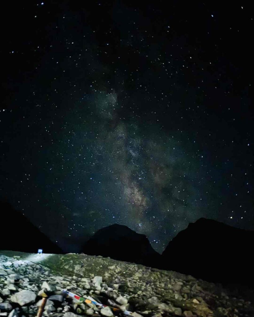 Kai kurie piligrimai verkia, medituoja ar jaučia gilų sielos išsivadavimo jausmą peržiangiant Dolma La vartus. Aš verkiau irgi, dėl nenusakomo žodžiais potyrio ir dėl to, kad užvilkau savo pavargusį kūną, nes tarpais atrodė, kad tiesiog neįmanoma. Čia kūnas susiduria su ribomis, o siela jas peržengia. (Deguonies kiekis čia tesiekia apie 50% jūros lygio).