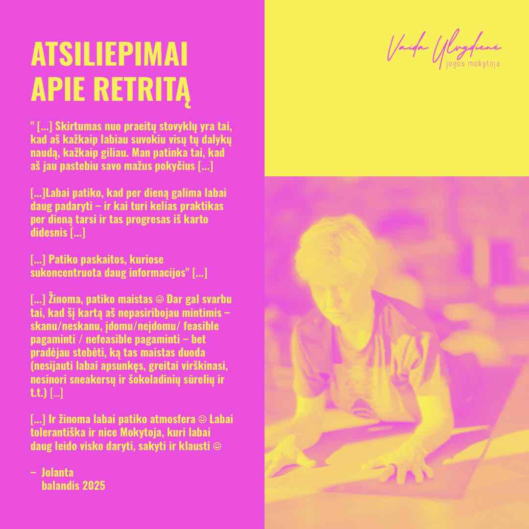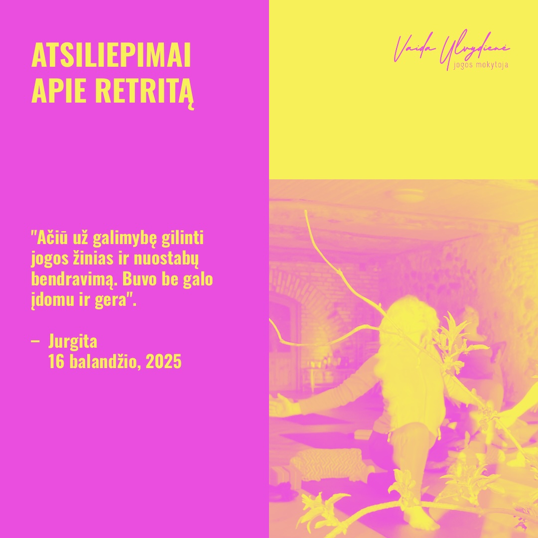 Ačiū už galimybę gilinti jogos žinias ir nuostabų bendravimą. Buvo be galo įdomu ir gera.