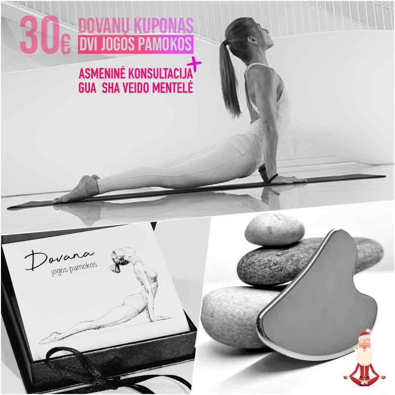 2 jogos pamokos bendroje grupėje + asmeninė mokytojos konsultacija + Gua Sha mentelė*.